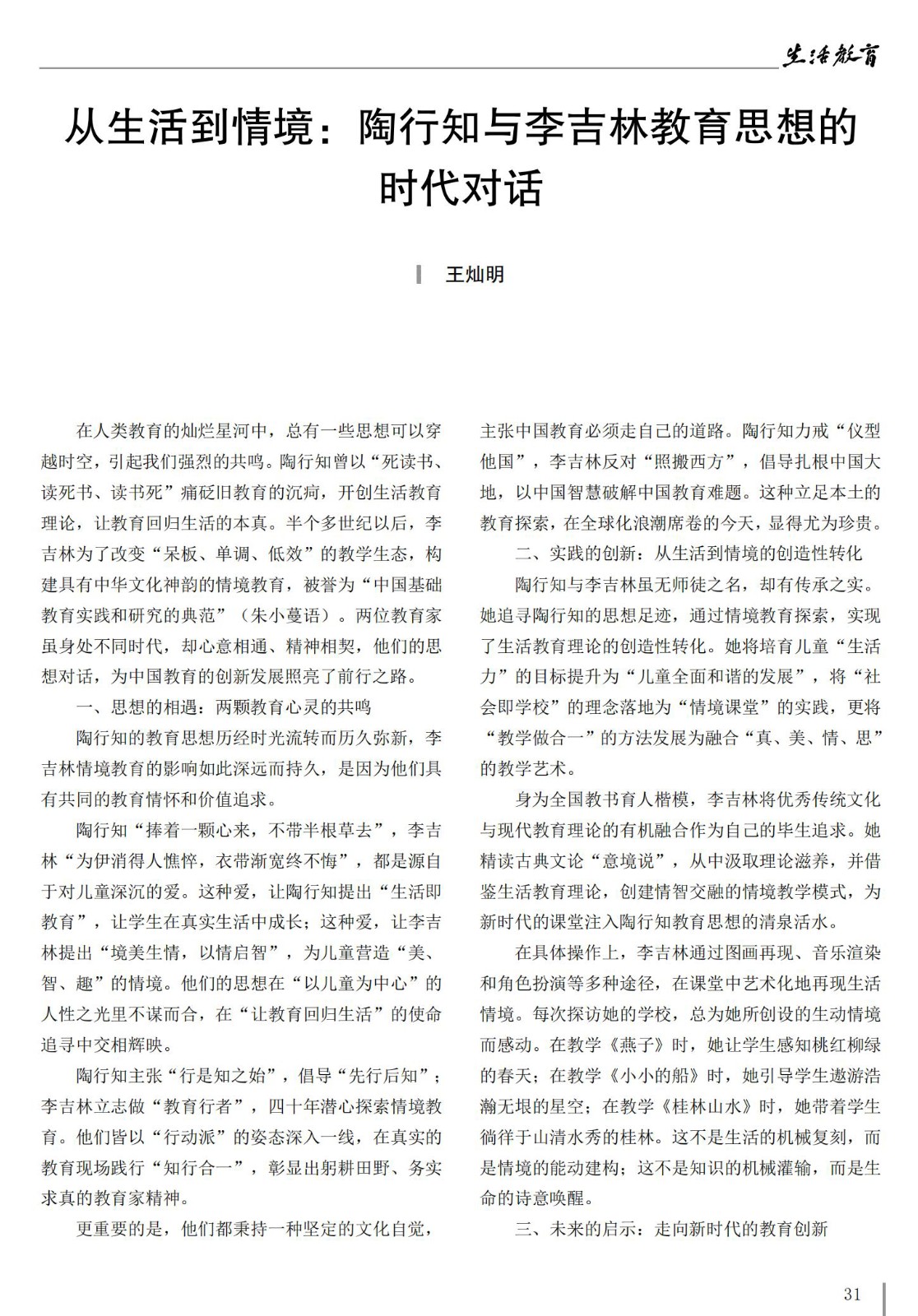 情境速递 | 王灿明:从生活到情境:陶行知与李吉林教育思想的时代对话