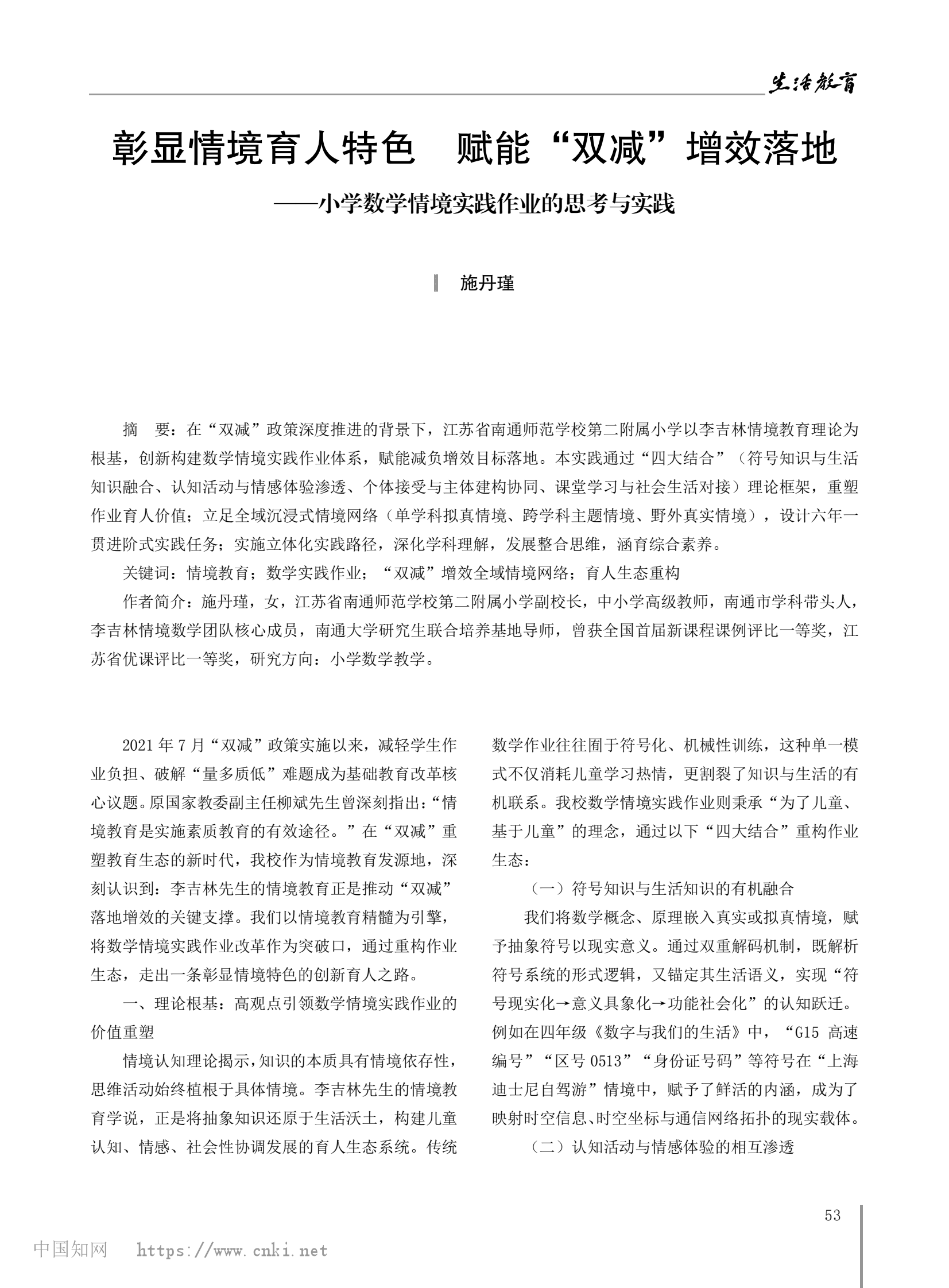 情境速递 | 施丹瑾:彰显情境育人特色 赋能“双减”增效落地——小学数学情境实践作业的思考与实践